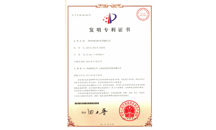 上海高更食品科技有限公司自2006年成立以来,秉持“安全、创新、简便”的方针,实行食品安全管理体系。截止于2014年底已获得三项国家专利。